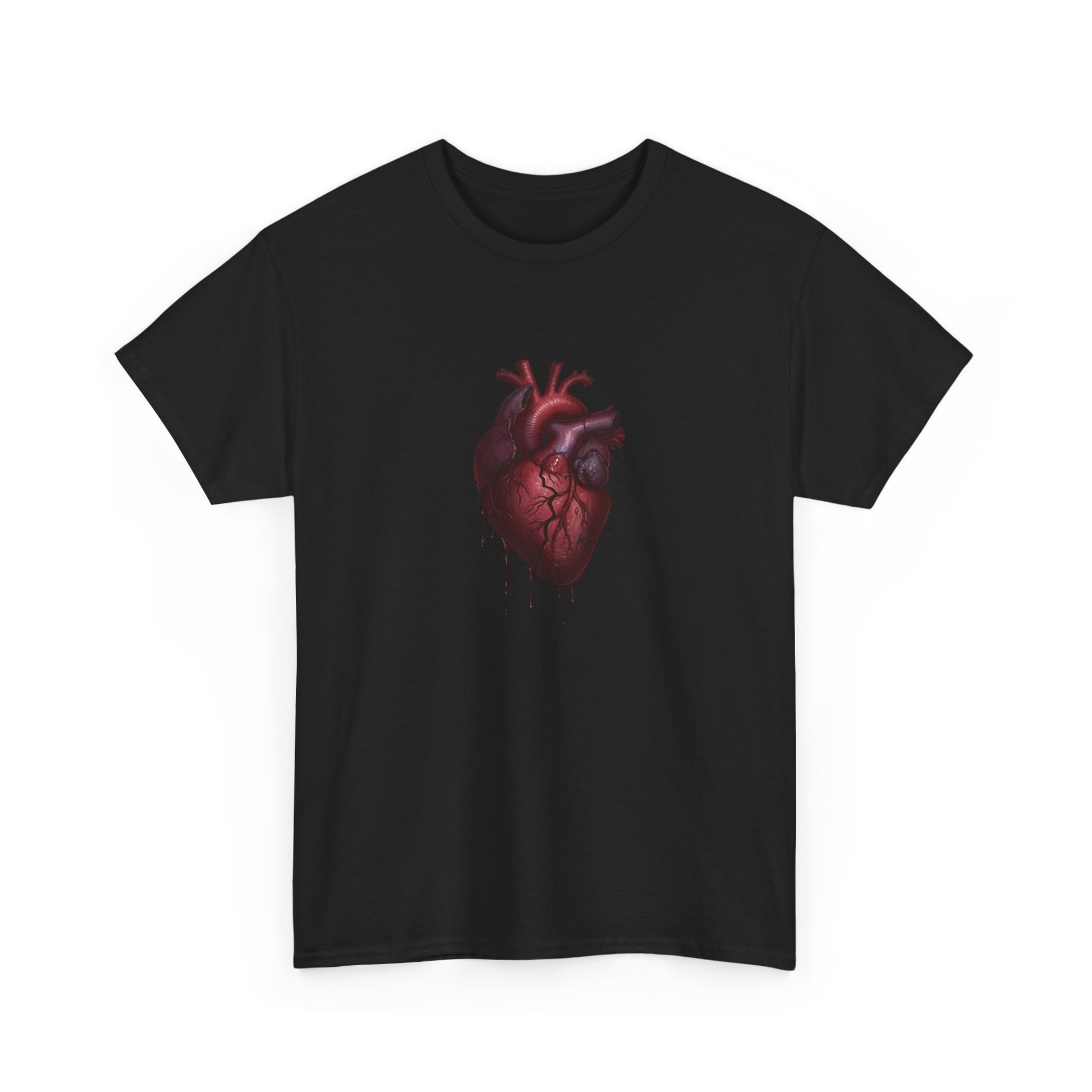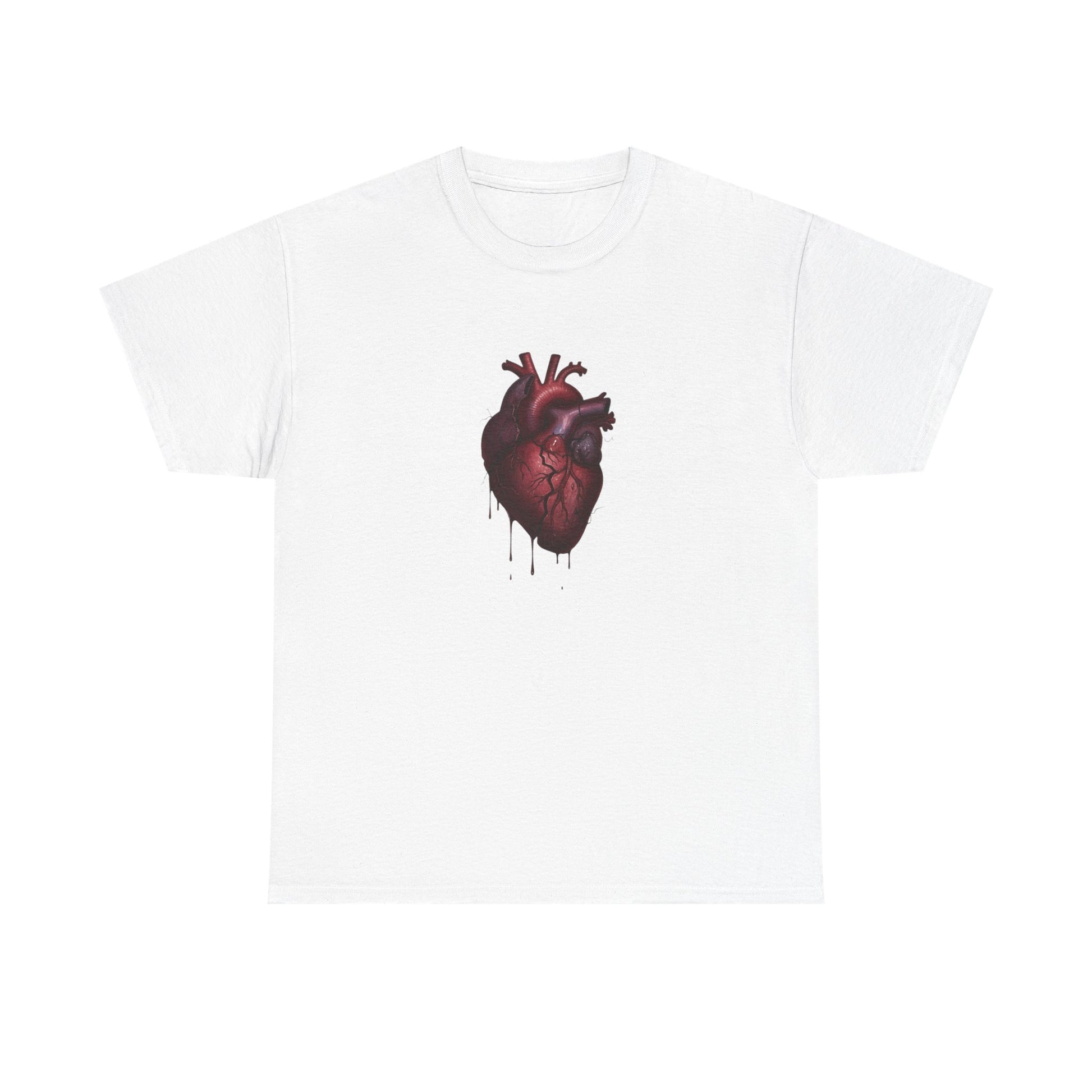 A crisp, wearable statement piece built around a dark, anatomical heart illustration. The image sits centered on a soft white cotton tee, its deep reds and shadowed edges drawing the eye. Lightweight yet sturdy, the shirt feels familiar from the first wear and keeps its shape thanks to a ribbed collar and shoulder tape. It slips into streetwear, concert, or gallery-night outfits — worn under a leather jacket, layered with flannels, or on its own when you want to let the design speak. There’s a tactile confidence to the fabric: smooth printing, no scratchy labels, and a classic relaxed fit that moves with you. This tee is for people who appreciate moody, art-forward graphics and clothing that ages into comfort.